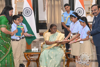 Podar International School Students from Hayatnagar meet the Honourable President of India, Smt. Droupadi Murmu, to celebrate Raksha Bandhan by presenting Handmade Rakhis